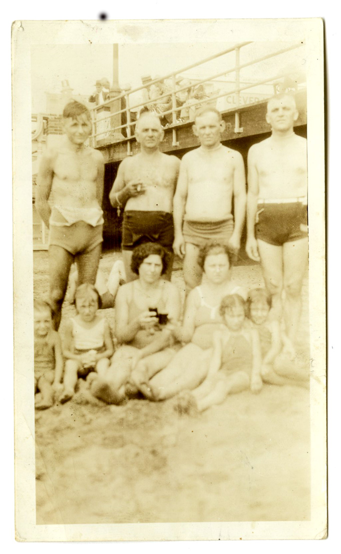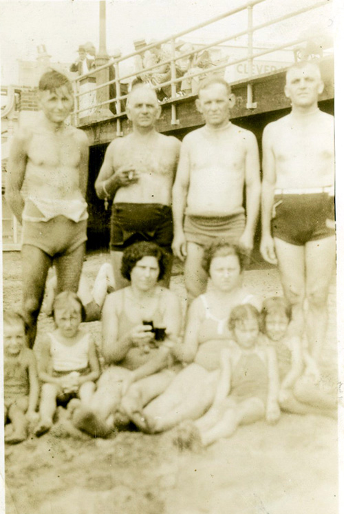 Titled on the back, "Gang From Coney Island" July 1937 - Mate Yelavich is 1st on the left and his daughters Ann and Mary are at his feet. Added: 9/23/2008 source photo